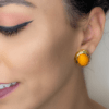 Brincos, Sem categoriaBrinco oval no estilo retrô, com pedra de cristal amarela viva.