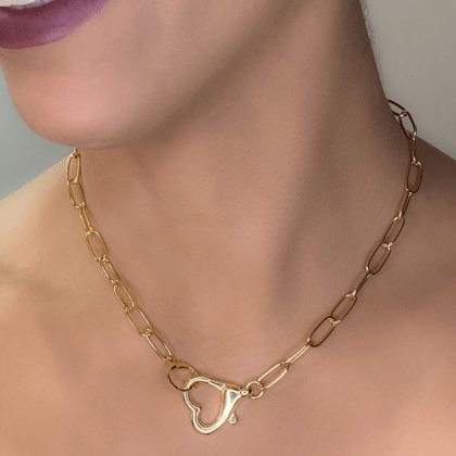 Acabamento do fecho de coração com zircônias brancas cravejadas.